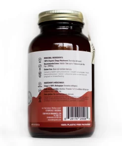- Medicinal ingredients: Organic Chaga Mushrooms (Inonotus obliquus) 500 mg